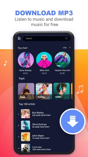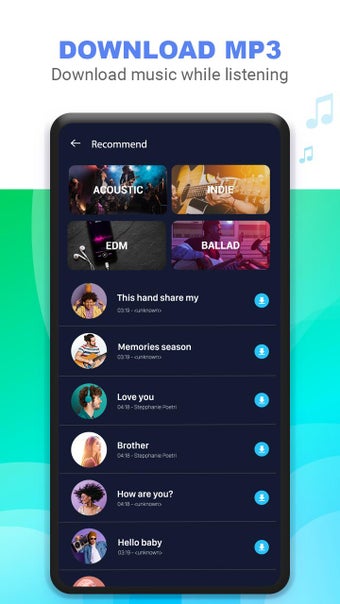 Music Downloader - Mp3 Playeris een gratis programma voor Android, behorend tot de categorie 'Muziek & Radio' .